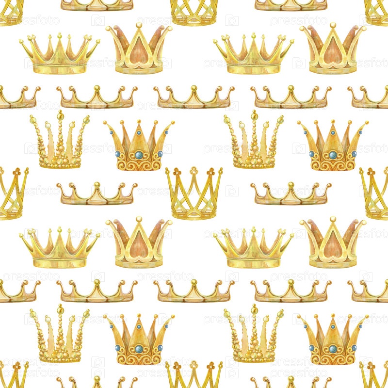 Узор с золотыми коронами. Бесшовный акварельный фон