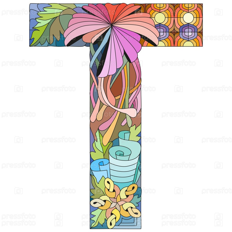 Zentangle стилизованный алфавит - буква Т. Векторная иллюстрация Этнический шаблон