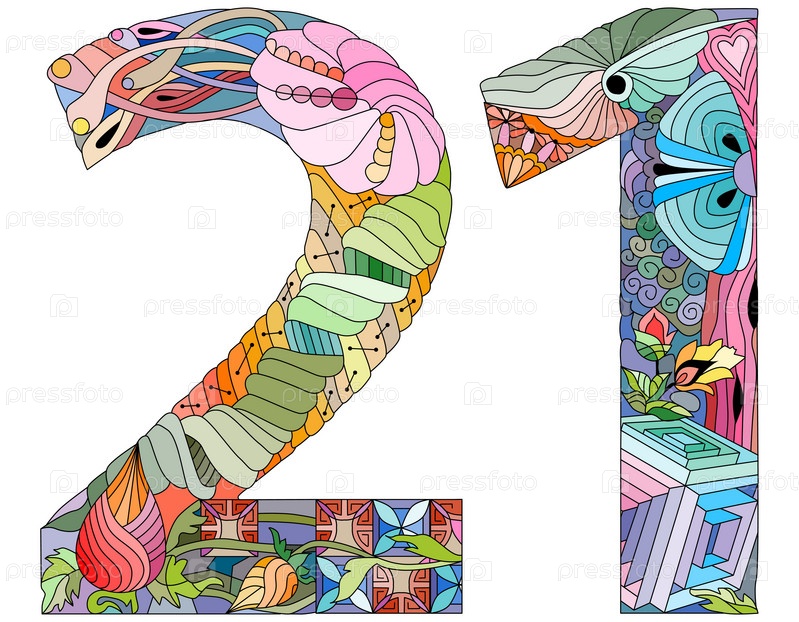 Двадцать один номер Изолированная иллюстрация зентаглей для украшения