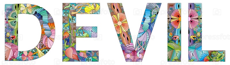 Художественный дизайн ручной росписи.Ручная рисование слов DEVIL для футболок и других украшений