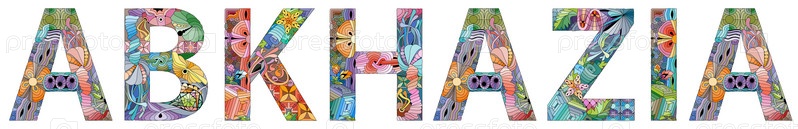 Векторное слово Абхазия. Художественный дизайн ручной росписи. Иллюстрация к дизайну футболки, татуировке и другим украшениям