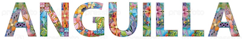 Векторное слово Ангилья. Художественный дизайн ручной росписи. Иллюстрация к дизайну футболки, татуировке и другим украшениям