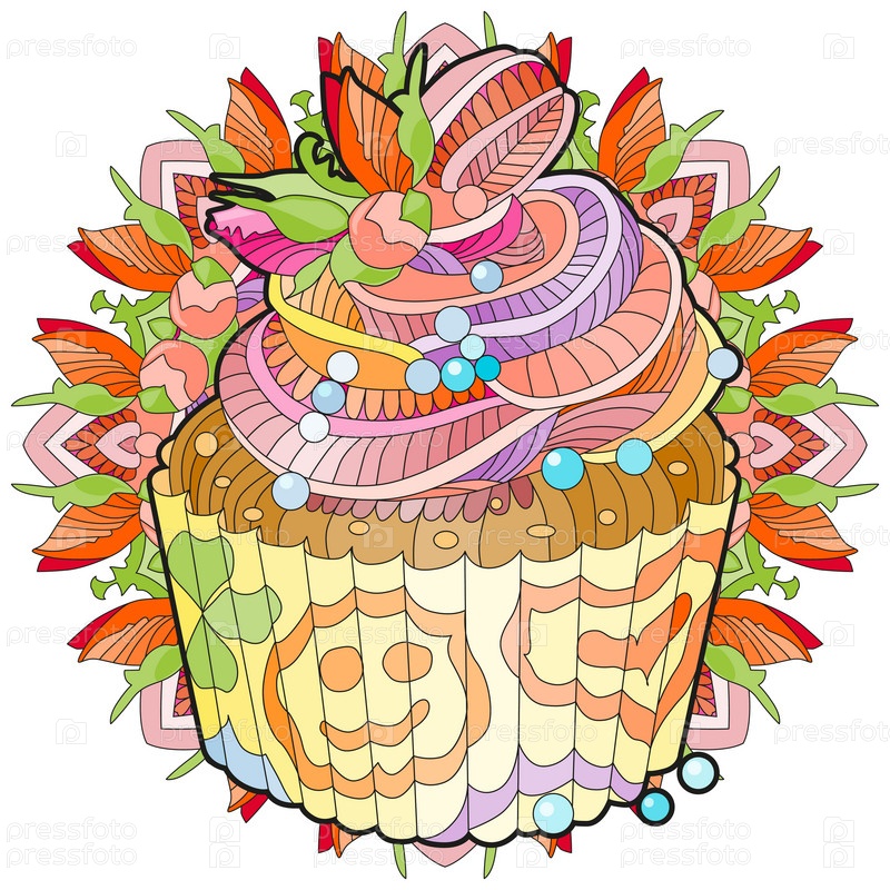 Векторный кусок пирога с абстрактными орнаментами мандалы.Ручная иллюстрация для футболки в стиле зентангл, каракули