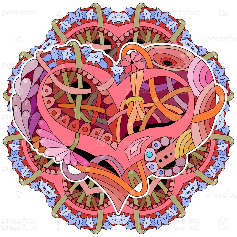 Эскизная иллюстрация сердца Doodle с мандалой