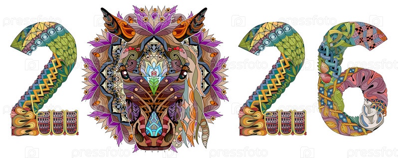 Нарисованная вручную зентангл-лошадь номер 2026 для футболки и других украшений