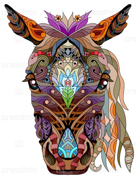 Голова лошади в стиле зентангл для дизайна футболки, татуировки и других украшений