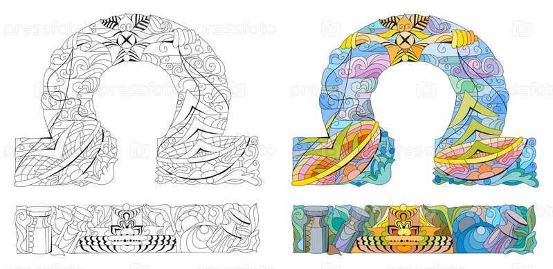 Знак зодиака Весы, концепт-арт астрологии. Дизайн татуировки. Набор цветов и контуров