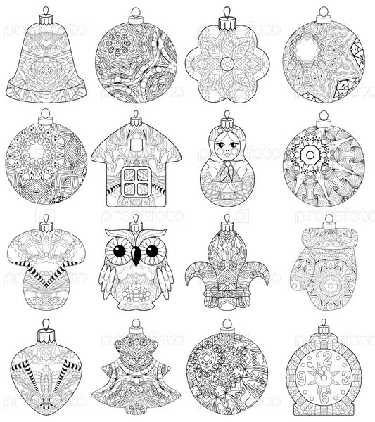 Zentangle стилизованный рождественский набор украшений. ручной рисунок векторного кружева