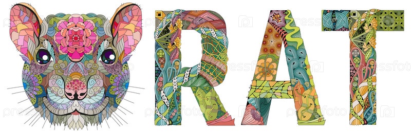 Zentangle стилизованная крыса голова с словом. ручной рисунок вектора кружев