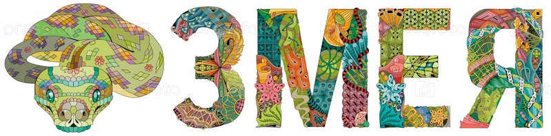 Художественный дизайн ручной росписи. Ручной рисунок слова змея на русском языке для футболки и других украшений