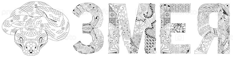 Художественный дизайн ручной росписи. Ручной рисунок слова змея на русском языке для футболки и других украшений