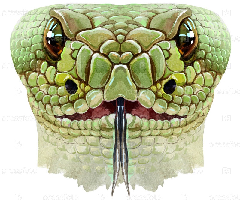 Характер гороскопа змеиной головы выделен на белом фоне. Зеленая рептилия акварельная иллюстрация