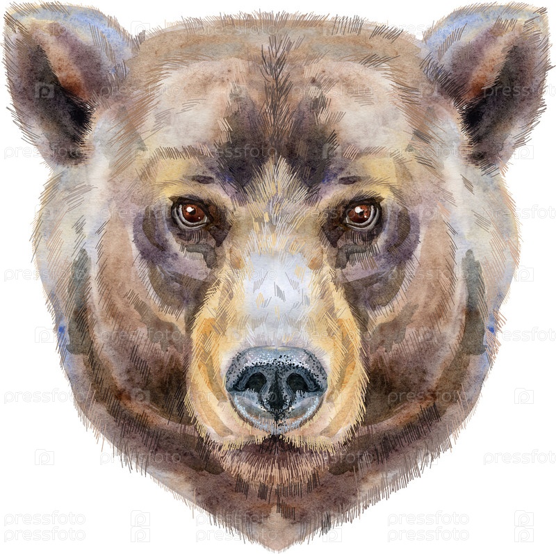 Медвежья голова. Акварельная иллюстрация медведя на белом фоне