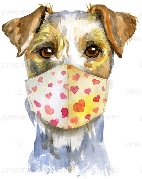 Акварельный портрет эрдельтерьера в медицинской маске