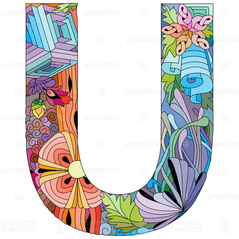 Zentangle стилизованный алфавит - буква U. Векторная иллюстрация Этнический шаблон