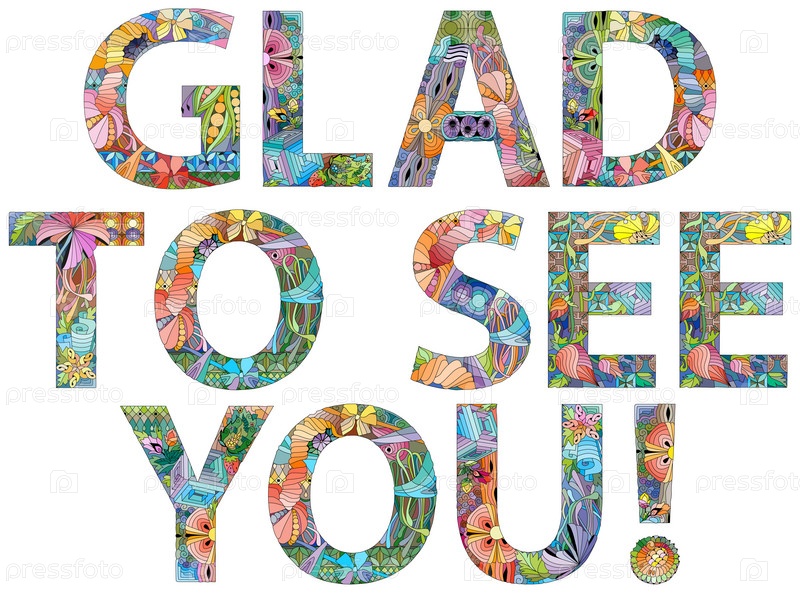 Художественный дизайн ручной росписи. Ручной рисунок слова "Рад видеть тебя" для футболки и других украшений