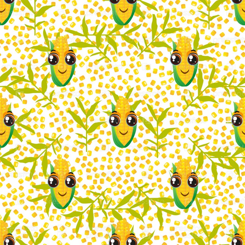 Бесшовный фон овощной кукурузы. Смешные милые лица персонажей