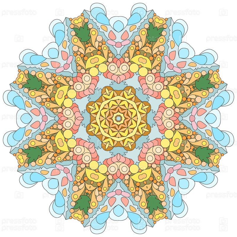 Декоративные круглые украшения. Необычная форма цветка. Восточный вектор, схемы антистрессовой терапии. Переплетение элементов дизайна. Вектор логотипов йоги