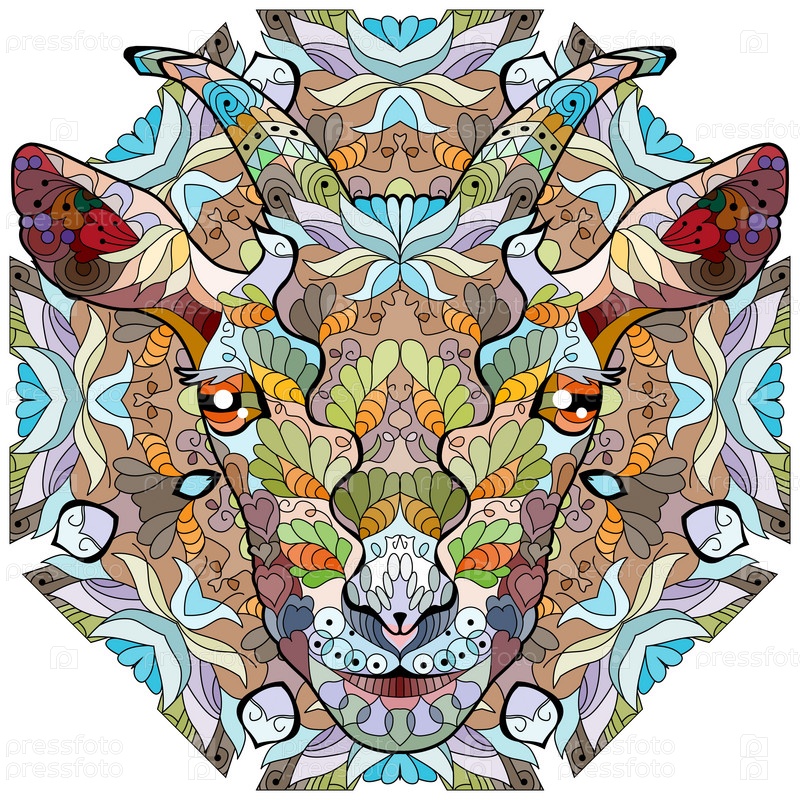 Голова козла в стиле зентагле с мандалой для дизайна футболок, татуировок и других украшений