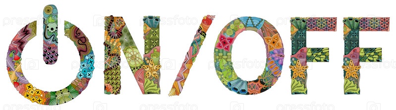 переключатель On Off в стиле zentangle с четкими линиями для дизайна футболок, татуировок и других украшений