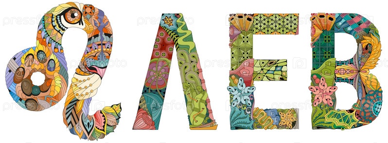 Знак зодиака Лев на русском языке, астрологический концепт-арт. Дизайн татуировки