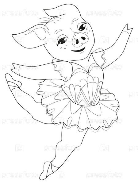 Свинья-балерина в стиле зентангл для дизайна футболок, татуировок и других украшений