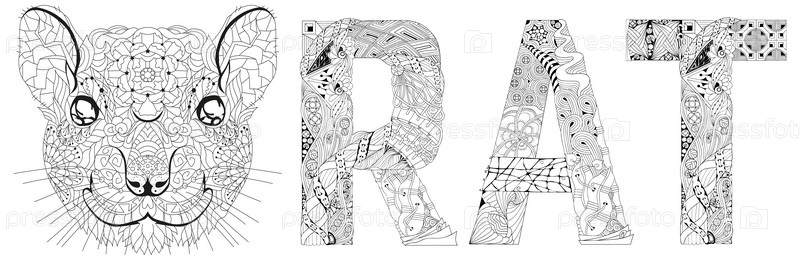Zentangle стилизованная крыса голова со словом. векторная иллюстрация ручной работы для окраски