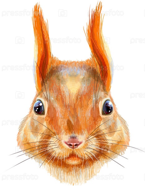 Акварельный портрет белки на белом фоне. Милое лесное животное для вашего дизайна
