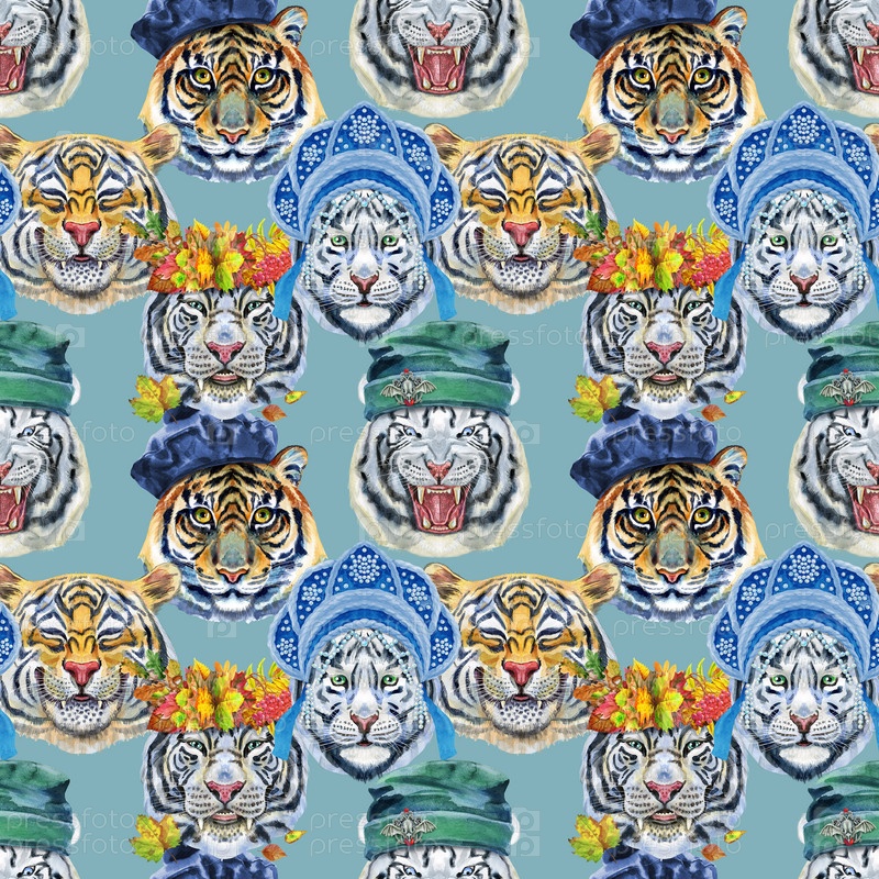 Бесшовный узор с изображением морды тигра. Декор для украшения текстиля или обоев