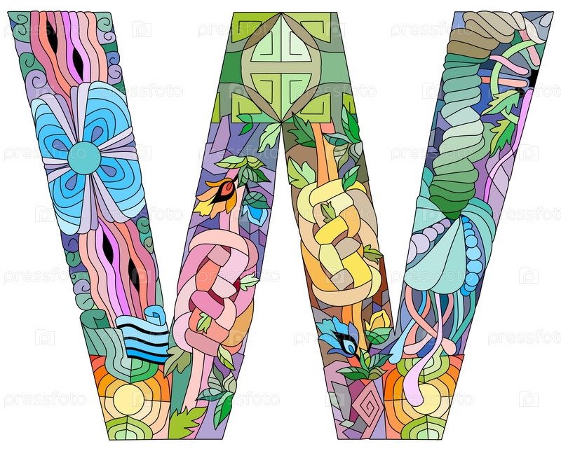 Монограмма буквы W, гравировка.Векторная иллюстрация