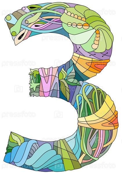 Три числа Изолированная иллюстрация зентагла для украшения