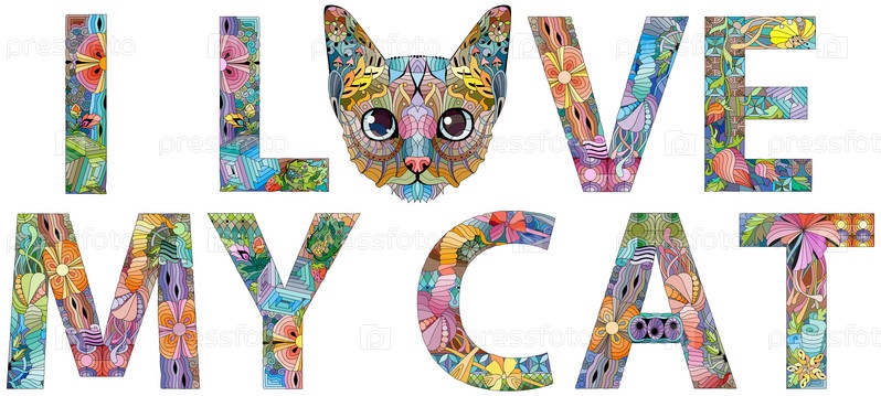 Я люблю свою кошку. векторный объект zentangle для украшения