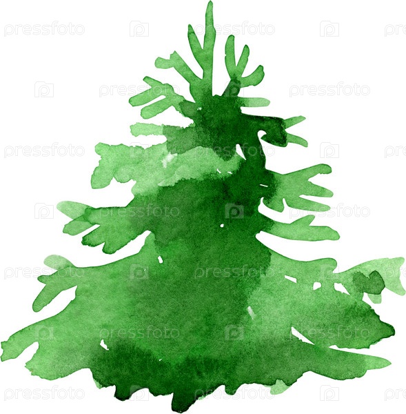Акварельная новогодняя елка на белом фоне
