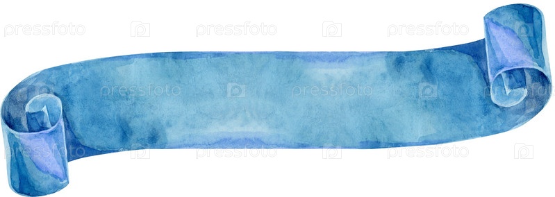 Акварель винтажная голубая лента. Ручная роспись баннеров на белом фоне