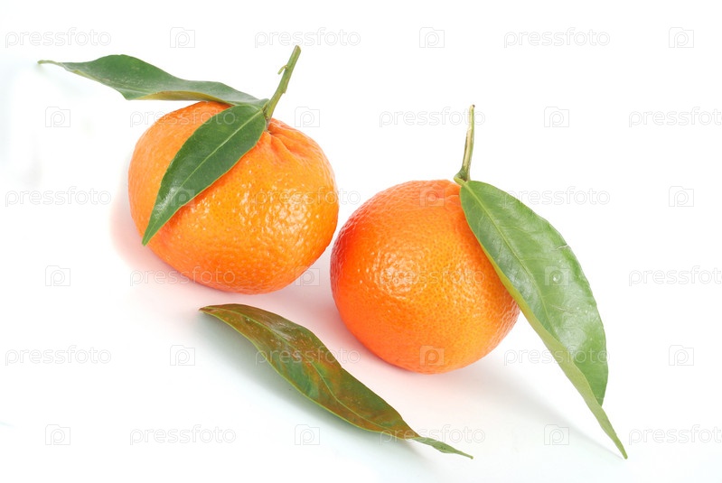 Мандарины с зелеными листьями