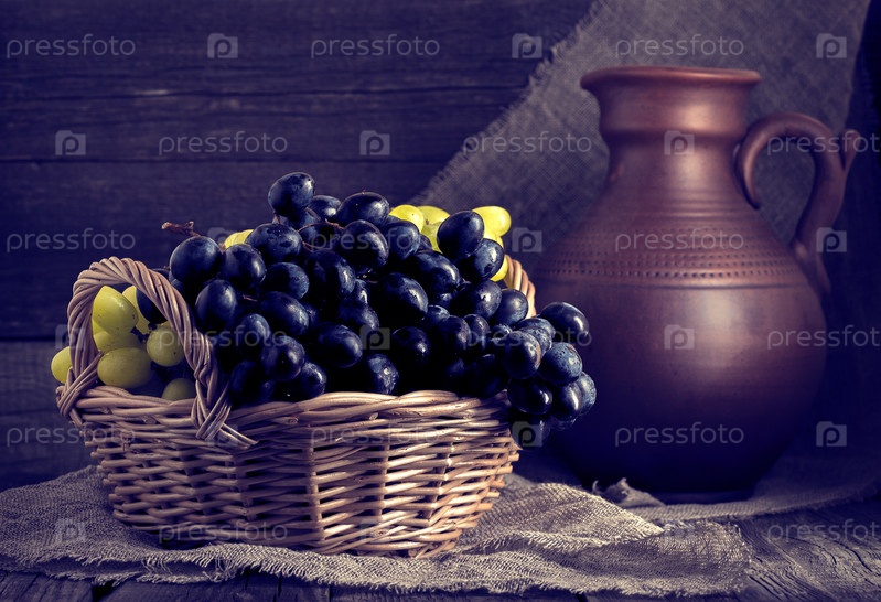 Виноград в корзине в деревенском стиле