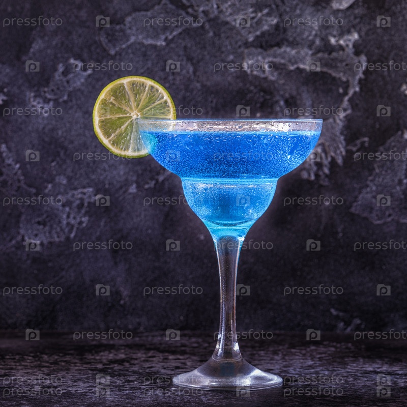 Коктейль Блю Кюрасао, украшенный фруктами