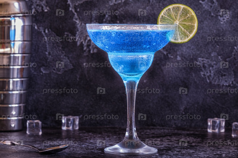 Коктейль Блю Кюрасао, украшенный фруктами