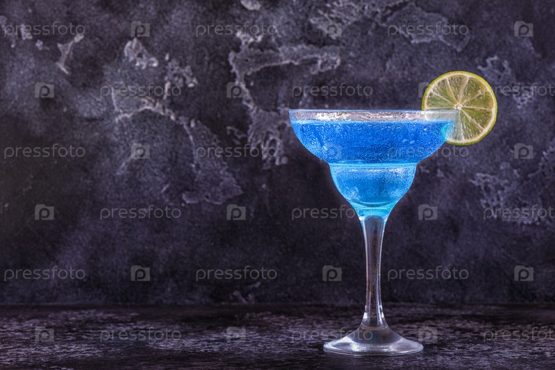 Коктейль Блю Кюрасао, украшенный фруктами