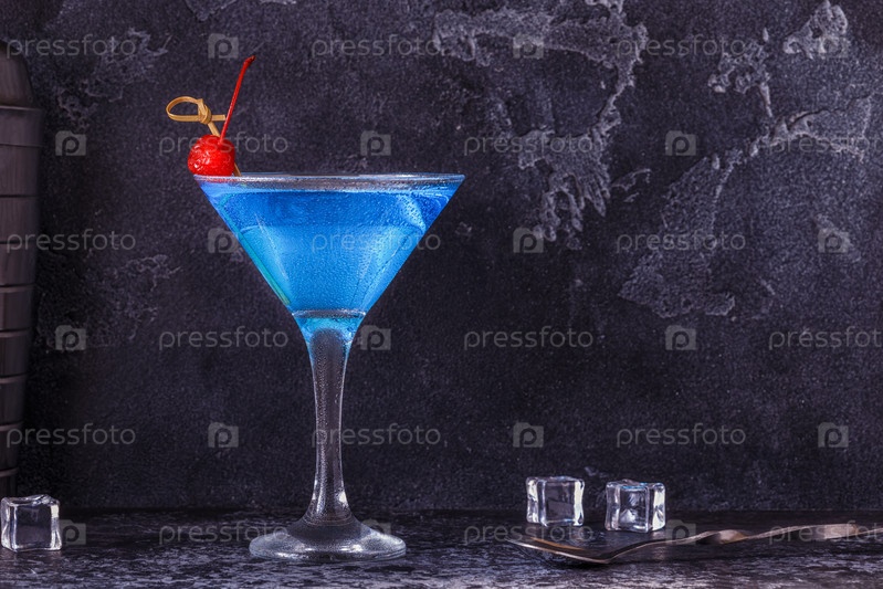 Коктейль Блю Кюрасао, украшенный фруктами