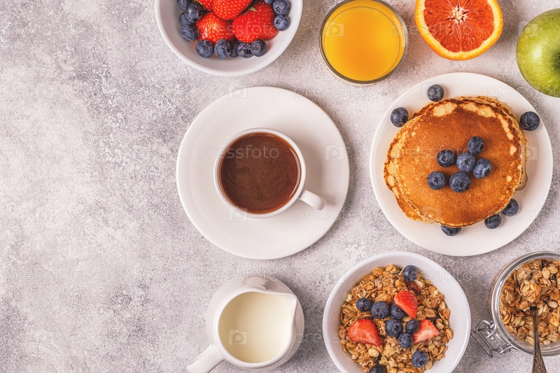 Вкусный завтрак на светлом столе
