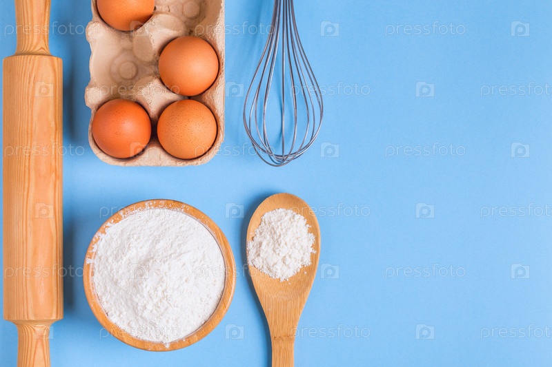 Ингредиенты для выпечки на синем фоне