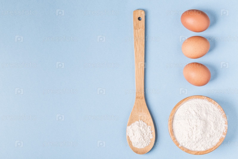 Ингредиенты для выпечки на синем фоне