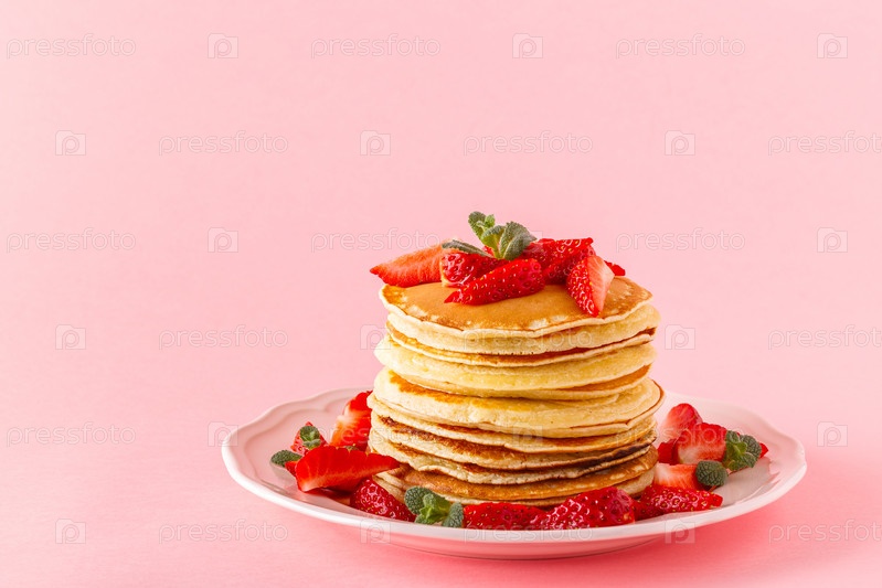 Блины с ягодами на ярком пастельном фоне