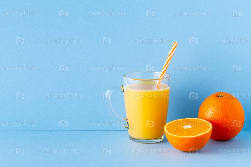 Апельсиновый сок на синем пастельном фоне