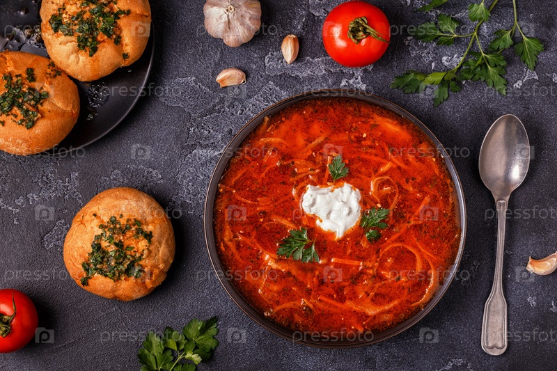 Украинский и русский традиционный красный суп - борщ