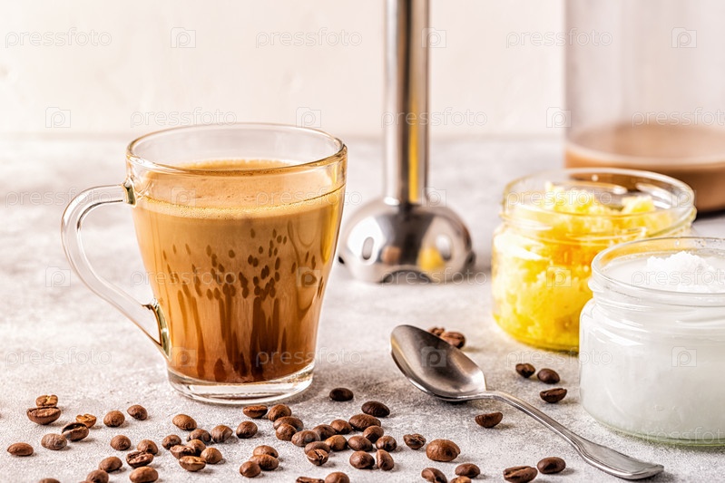 Кофе, смешанный с маслом ги и кокосовым маслом MCT