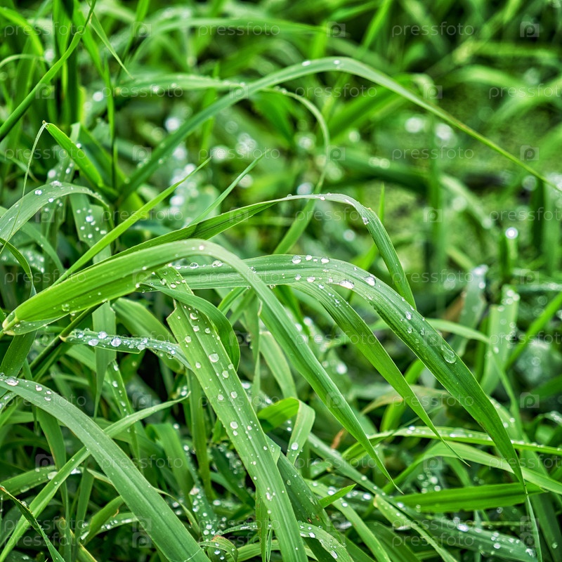 Свежая зеленая трава с каплями воды