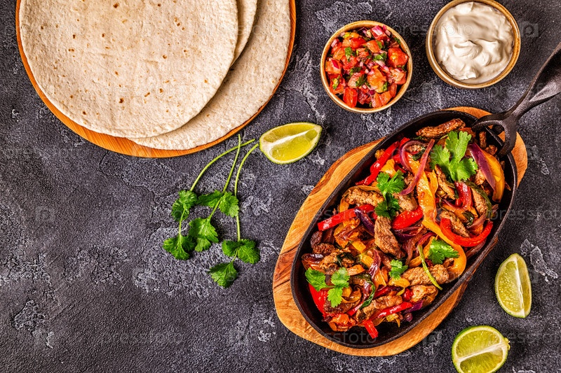 Фахитас с цветным перцем и луком, подается с лепешками