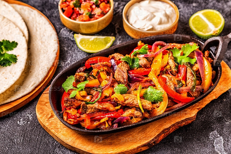 Фахитас с цветным перцем и луком, подается с лепешками